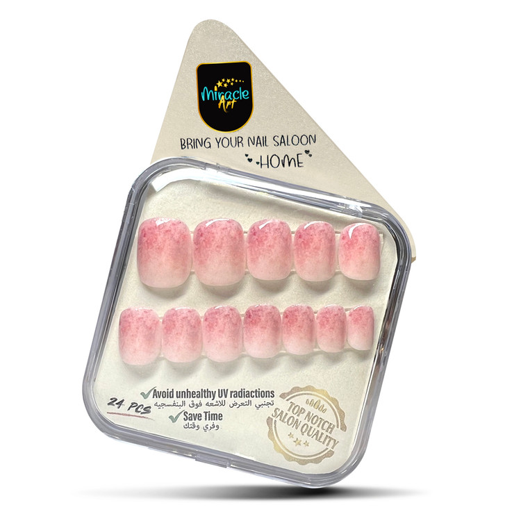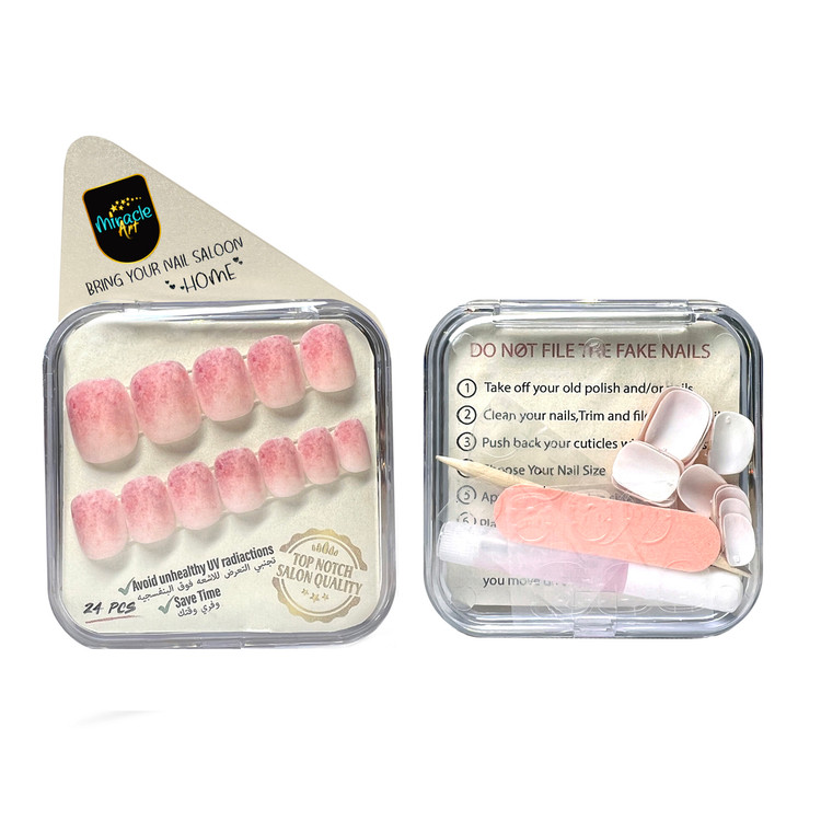 ناخن مصنوعی میراکل آرت، مدل کوتاه با طرح Misty Rose که در بسته 24 عددی عرضه گردیده است و ساخت کشور امارات میباشد. این ناخن کاشت موقت (ناخن مصنوعی) با طراحی های منحصر به فرد و زیبا که تمام آن کار دست میباشد یک محصول خاص است که یک سالن آرایشی کامل را به خانه زیباجویان می آورد. این محصول با مواد اکرلیک و ژلیش کاشت ناخن که دارای مقاومت و استحکام بسیار بالایی میباشند ساخته شده است. این محصول مناسب برای تمامی سایزهای ناخن میباشد، چرا که در بسته آن 24 عدد ناخن با سایزهای مختلف وجود دارد که مناسب برای هر فردی به طور اختصاصی است و به همین دلیل از سایز s تا xl را پشتیبانی میکند. این محصول یکبار مصرف نبوده و امکان استفاده چندین باره با رعایت اصول میسر می باشد. از مزایای این نوع ناخن مصنوعی سرعت بالا در انجام نصب و نیاز نداشتن به ترمیم میباشد. این مدل را میتوان در کمتر از چند دقیقه بر روی دست چسباند و یا جدا کرد. از دیگر ویژگی های این نوع ناخن مصنوعی بدون بو بودن، مواد اولیه غیر سمی و لبه های بسیار نازک و ظریف میباشد. افرادی که به تمیزی ناخن ها خود اهمیت میدهند و یا نیاز به ناخن موقت برای مراسم ها و جشن ها دارند و یا استفاده از لاک ناخن و کاشت دائمی برای آنها مقدور نمیباشد این محصول یک گزینه مناسب برای آنها میباشد. محتویات داخل جعبه این محصول شامل 24 عدد ناخن با سایزهای کاربردی، خلال چوبی مخصوص مانیکور، چسب مایع مخصوص، چسب استیکری دو طرفه و مینی سوهان ناخن میباشد. از ویژگی های این محصول میتوان به ظاهر بسیار طبیعی، قابلیت شستشو بودن، نصب و استفاده آسان در کمتر از چند دقیقه و قابلیت استفاده به دفعات بسیار اشاره کرد.