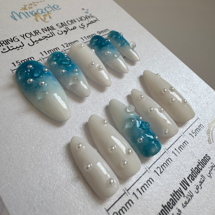 ناخن مصنوعی(کاشت موقت) میراکل آرت سایز مدیوم یا متوسط (M) مدل بادامی ، با طرح کوه های بلند در بسته 10 عددی عرضه گردیده است و ساخت کشور امارات میباشد. این ناخن کاشت موقت (ناخن مصنوعی) که تمام آن کار دست میباشد و یک محصول خاص است که یک سالن آرایشی کامل را به خانه زیباجویان می آورد. از دیگر ویژگی های این نوع ناخن مصنوعی بدون بو بودن، مواد اولیه غیر سمی و لبه های بسیار نازک و ظریف میباشد. افرادی که به تمیزی ناخن ها خود اهمیت میدهند و یا نیاز به ناخن موقت برای مراسم ها و جشن ها دارند و یا استفاده از لاک ناخن و کاشت دائمی برای آنها مقدور نمیباشد این محصول یک گزینه مناسب برای آنها میباشد. ناخنهای مصنوعی میراکل آرت با طراحیهای جذاب و مدرن، گزینهای ایدهآل برای افرادی هستند که نه تنها به زیبایی دستان بلکه به سلامتی خود و دوری از اشعه مضر UV اهمیت میدهند. از مزایای این نوع ناخن مصنوعی سرعت بالا در انجام نصب و نیاز نداشتن به ترمیم میباشد. این مدل را میتوان در کمتر از چند دقیقه بر روی دست چسباند و یا جدا کرد.