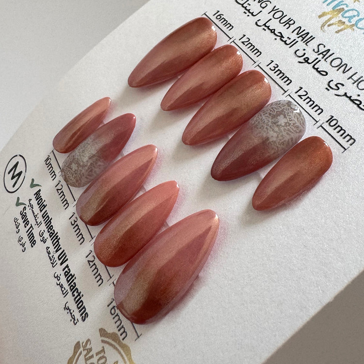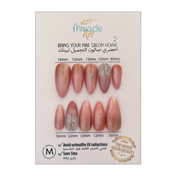 چرا ناخن مصنوعی میراکل آرت؟ با ناخنهای مصنوعی میراکل آرت، شما میتوانید بدون نیاز به صرف زمان طولانی برای رفتن به سالن های زیبایی و هزینههای بالای کاشت و مواد آسیب رسان به ناخن طبیعی ، دستان خود را زیباتر کنید. طراحیهای متنوع و نصب آسان، شما را همیشه آمادهی هر رویدادی میکند. قبل از خرید حتما سایز ناخن های خود را با جدول راهنما موجود در گالری، مطابقت دهید. همین حالا سفارش دهید و زیبایی ناخن ها و دستان خود را دو چندان کنید!
