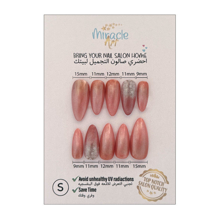 چرا ناخن مصنوعی میراکل آرت؟ با ناخنهای مصنوعی میراکل آرت، شما میتوانید بدون نیاز به صرف زمان طولانی برای رفتن به سالن های زیبایی و هزینههای بالای کاشت و مواد آسیب رسان به ناخن طبیعی ، دستان خود را زیباتر کنید. طراحیهای متنوع و نصب آسان، شما را همیشه آمادهی هر رویدادی میکند. قبل از خرید حتما سایز ناخن های خود را با جدول راهنما موجود در گالری، مطابقت دهید. همین حالا سفارش دهید و زیبایی ناخن ها و دستان خود را دو چندان کنید!