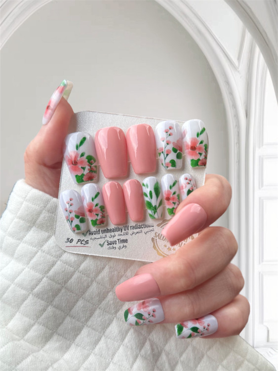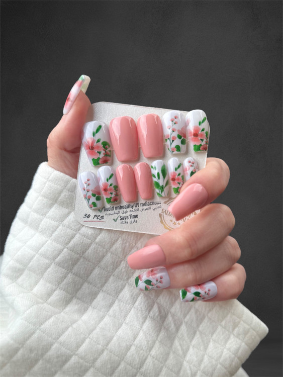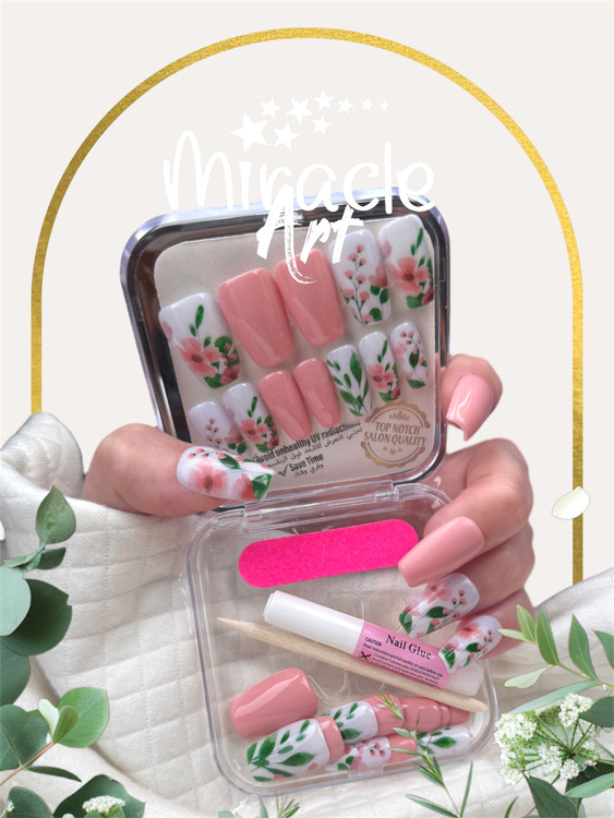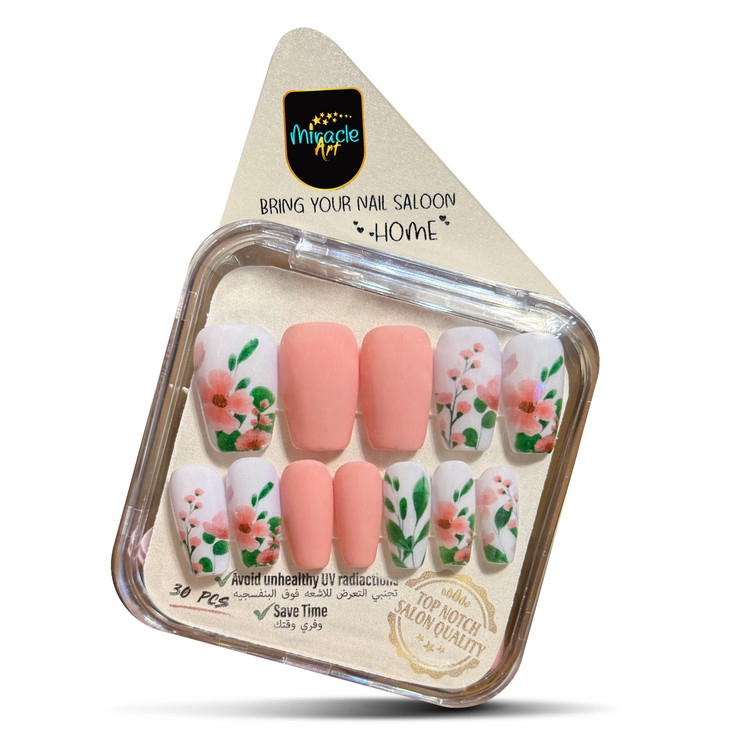 ناخن مصنوعی میراکل آرت، مدل بالرین با طرح بهار در بسته ۳۰ عددی عرضه گردیده است . این ناخن کاشت موقت (ناخن مصنوعی) با طراحی های منحصر به فرد و زیبا که تمام آن کار دست میباشد یک محصول خاص است که یک سالن آرایشی کامل را به خانه زیباجویان می آورد. این محصول با مواد اکرلیک و ژلیش کاشت ناخن که دارای مقاومت و استحکام بسیار بالایی میباشند ساخته شده است. این محصول مناسب برای تمامی سایزهای ناخن میباشد، چرا که در بسته آن۳۰ عدد ناخن با سایزهای مختلف وجود دارد که مناسب برای هر فردی به طور اختصاصی است و به همین دلیل از سایز s تا xl را پشتیبانی میکند. این محصول یکبار مصرف نبوده و امکان استفاده چندین باره با رعایت اصول میسر می باشد. از مزایای این نوع ناخن مصنوعی سرعت بالا در انجام نصب و نیاز نداشتن به ترمیم میباشد. این مدل را میتوان در کمتر از چند دقیقه بر روی دست چسباند و یا جدا کرد. از دیگر ویژگی های این نوع ناخن مصنوعی بدون بو بودن، مواد اولیه غیر سمی و لبه های بسیار نازک و ظریف میباشد. افرادی که به تمیزی ناخن ها خود اهمیت میدهند و یا نیاز به ناخن موقت برای مراسم ها و جشن ها دارند و یا استفاده از لاک ناخن و کاشت دائمی برای آنها مقدور نمیباشد این محصول یک گزینه مناسب برای آنها میباشد. محتویات داخل جعبه این محصول شامل ۳۰ عدد ناخن با سایزهای کاربردی، خلال چوبی مخصوص مانیکور، چسب مایع مخصوص، چسب استیکری دو طرفه و مینی سوهان ناخن میباشد. از ویژگی های این محصول میتوان به ظاهر بسیار طبیعی، قابلیت شستشو بودن، نصب و استفاده آسان در کمتر از چند دقیقه و قابلیت استفاده به دفعات بسیار اشاره کرد.