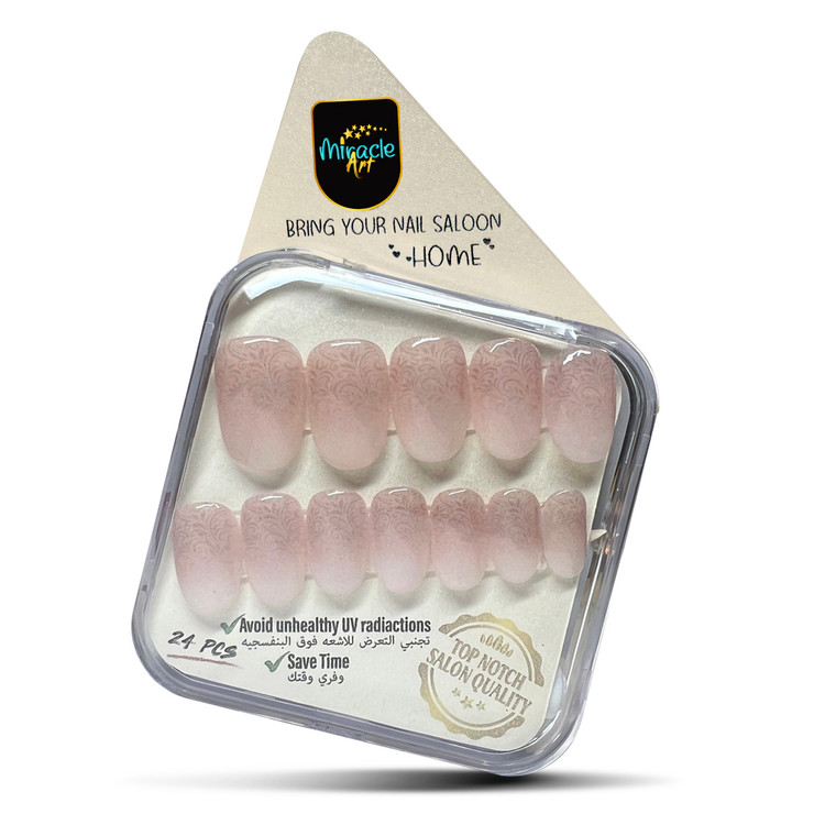 ناخن مصنوعی میراکل آرت، مدل گرد با طرح آمبره در بسته 24 عددی عرضه گردیده است . این ناخن کاشت موقت (ناخن مصنوعی) با طراحی های منحصر به فرد و زیبا که تمام آن کار دست میباشد یک محصول خاص است که یک سالن آرایشی کامل را به خانه زیباجویان می آورد. این محصول با مواد اکرلیک و ژلیش کاشت ناخن که دارای مقاومت و استحکام بسیار بالایی میباشند ساخته شده است. این محصول مناسب برای تمامی سایزهای ناخن میباشد، چرا که در بسته آن 24 عدد ناخن با سایزهای مختلف وجود دارد که مناسب برای هر فردی به طور اختصاصی است و به همین دلیل از سایز s تا xl را پشتیبانی میکند. این محصول یکبار مصرف نبوده و امکان استفاده چندین باره با رعایت اصول میسر می باشد. از مزایای این نوع ناخن مصنوعی سرعت بالا در انجام نصب و نیاز نداشتن به ترمیم میباشد. این مدل را میتوان در کمتر از چند دقیقه بر روی دست چسباند و یا جدا کرد. از دیگر ویژگی های این نوع ناخن مصنوعی بدون بو بودن، مواد اولیه غیر سمی و لبه های بسیار نازک و ظریف میباشد. افرادی که به تمیزی ناخن ها خود اهمیت میدهند و یا نیاز به ناخن موقت برای مراسم ها و جشن ها دارند و یا استفاده از لاک ناخن و کاشت دائمی برای آنها مقدور نمیباشد این محصول یک گزینه مناسب برای آنها میباشد. محتویات داخل جعبه این محصول شامل 24 عدد ناخن با سایزهای کاربردی، خلال چوبی مخصوص مانیکور، چسب مایع مخصوص، چسب استیکری دو طرفه و مینی سوهان ناخن میباشد. از ویژگی های این محصول میتوان به ظاهر بسیار طبیعی، قابلیت شستشو بودن، نصب و استفاده آسان در کمتر از چند دقیقه و قابلیت استفاده به دفعات بسیار اشاره کرد.